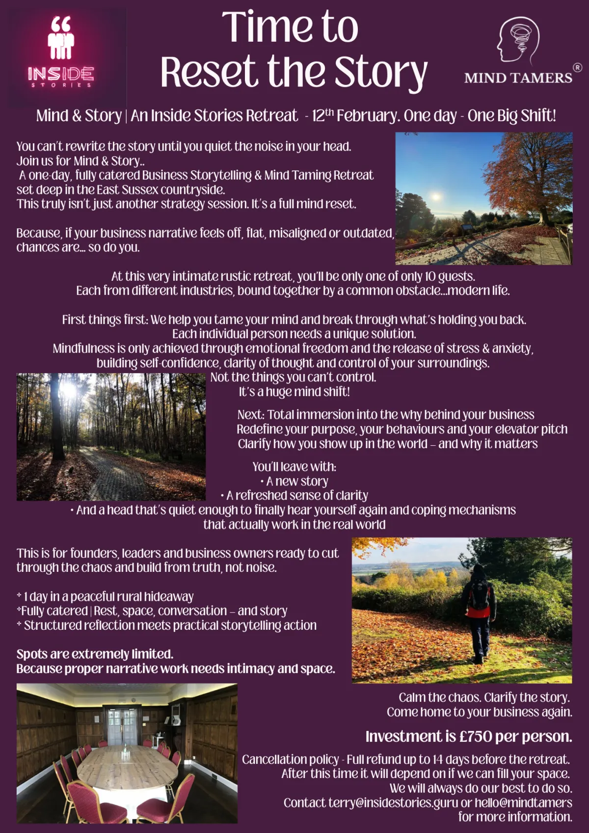 Mind & Story is a one-day, invitation-only retreat for business owners, founders, and leaders who’ve outgrown noise, surface strategy, and borrowed narratives.